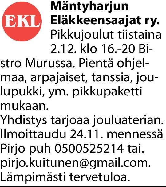 Tiedustelut Pirjo Kuitunen 050 052 5214.