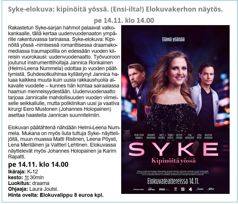 Elokuvakerho toiminta on avoin kaikille ja näytös järjestetään kerran kuukaudessa.